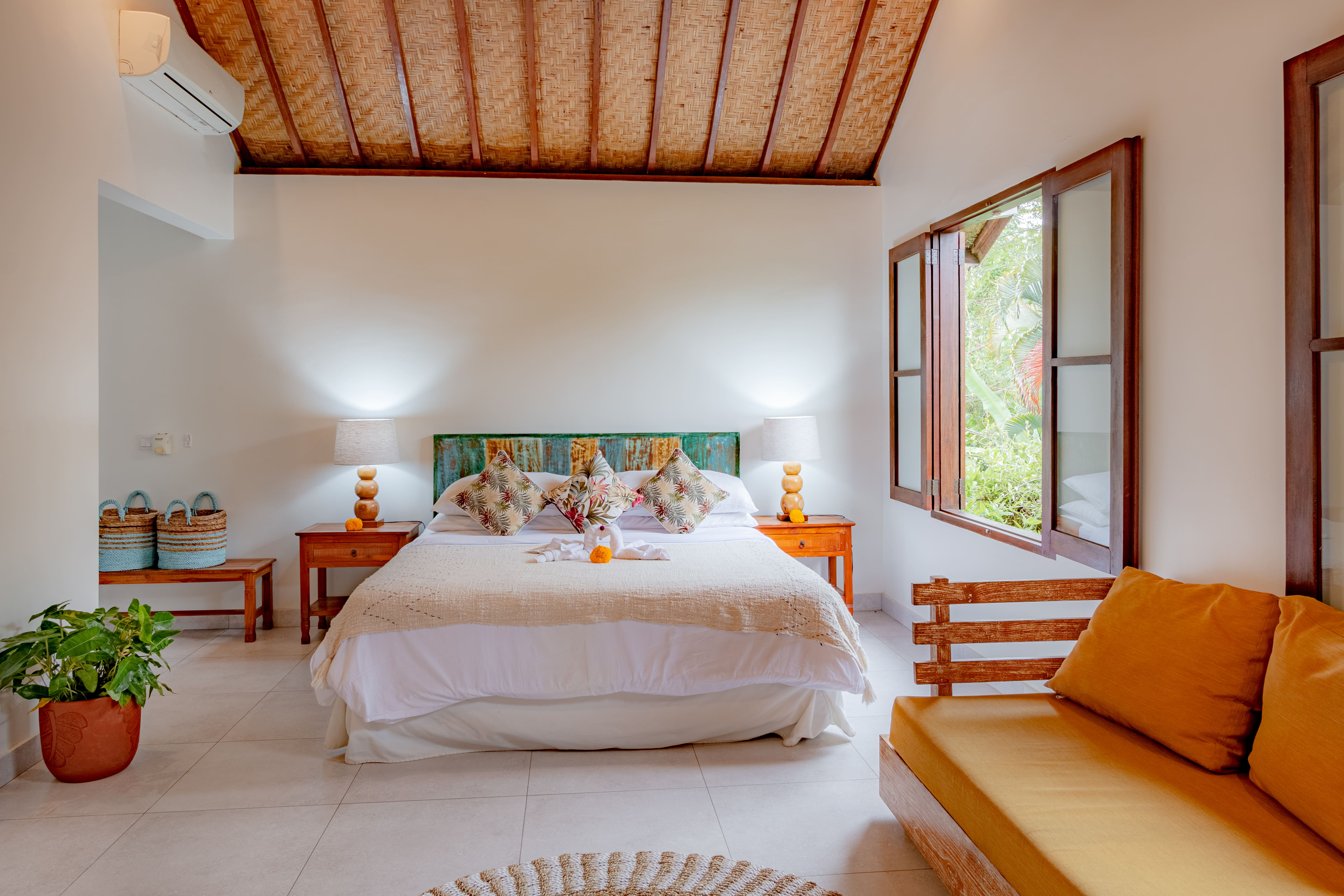 Featuring a tropical garden, this spacious villa has an open air living room, a dining area and a kitchenette. It's fitted with a flat-screen cable TV, a DVD player and a personal safe. En suite bathroom comes with hot and cold water facilities.